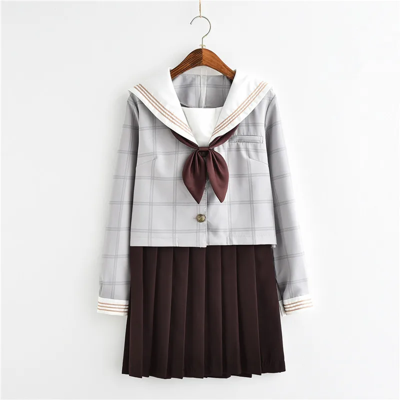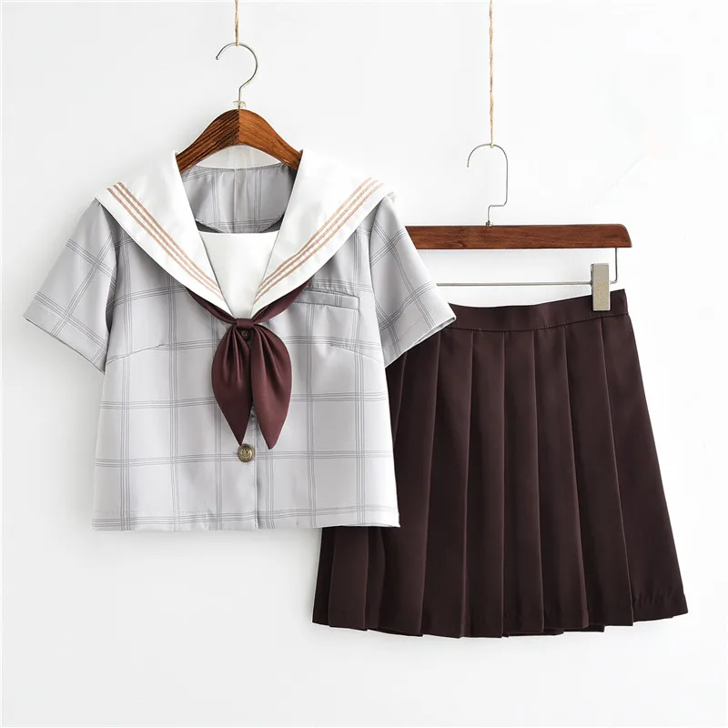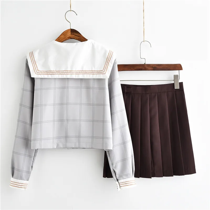 BEST 2018 summer autumn japanese school uniforms sailor tops+skirt navy style students clothes for girl